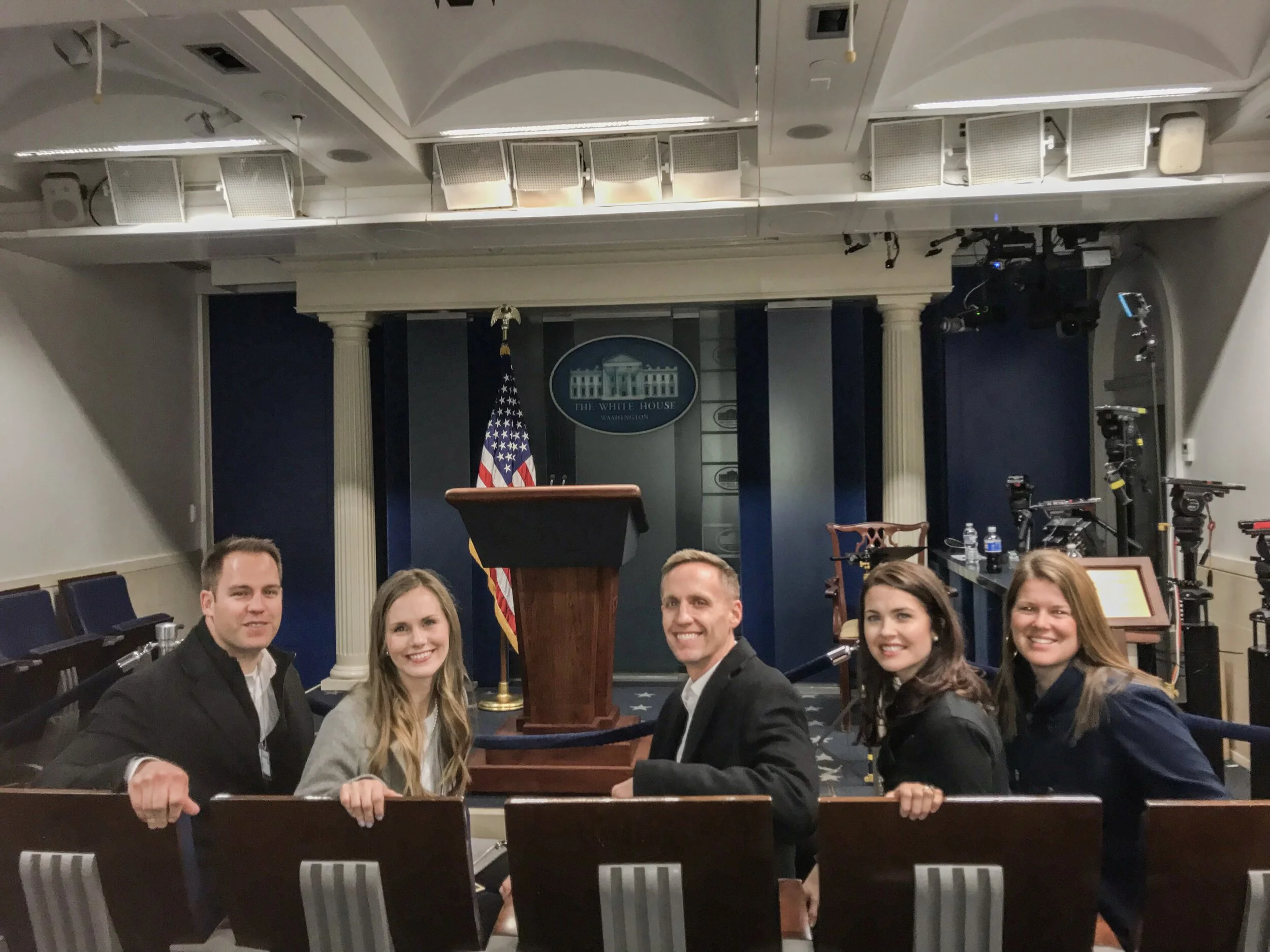 We were not allowed to take pictures inside the West Wing, but we could take pictures at the entrance to the West Wing, inside the Press Briefing Room, and in the Eisenhower Executive Office Building. We were allowed to see the doors to the Situation Room (not inside it though), Oval Office, Cabinet Room, Roosevelt Room, the Press Briefing Room, and we were taken over to the Eisenhower Executive Office Building where a large majority of staffers work.